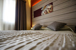 Il sistema sonno Dorelan e la biancheria FRETTE garantiscono un riposo avvolgente, mentre la dotazione tecnologica contemporanea accompagna l’ospite in un soggiorno confortevole e raffinato.