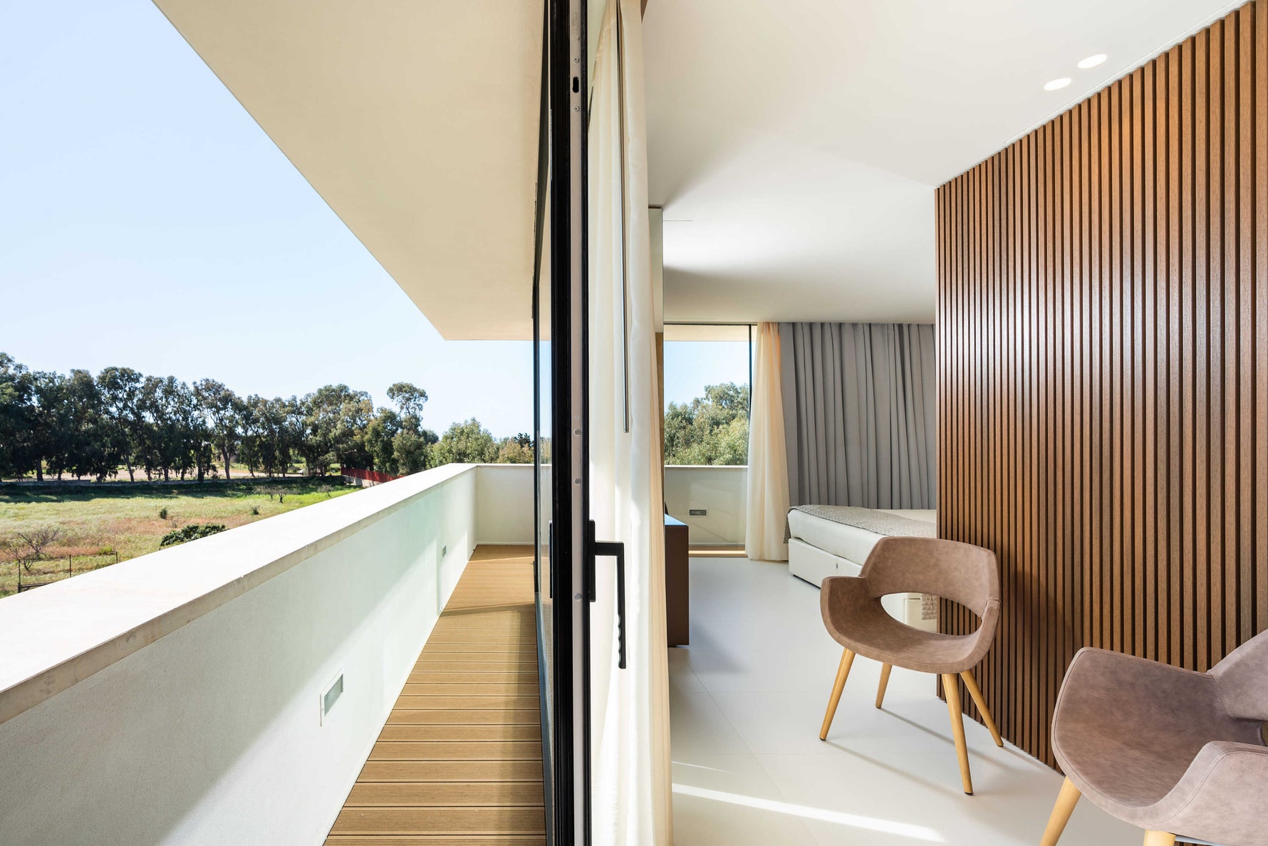 Gli interni, ampi e luminosi, sono arredati con gusto essenziale e raffinato. Le tonalità calde e naturali dialogano con la luce del Mediterraneo, creando un’atmosfera di quiete e contemplazione.